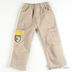 Брюки прямого силуэта. В пояс вставлена резинка, пришиты шлевки. Застежка на молнию. Два передних кармана, два боковых кармана на брючинах. Декоративные аппликации и нашивки.