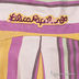 Длинная блузка свободного кроя застегивается на пуговицу на спинке. Юбка в встречную бантовую складку. На полочке декоративное украшение из ткани и вышивкой из пайеток.