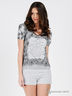 Удобный комплект прилегающего силуэта выполнен из тонкого эластичного трикотажа. Футболка с v-образным вырезом горловины и с коротким рукавом на резинке. Низ изделия на резинке. Комфортные трусики-шорты. Отличный домашний комплект!