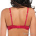 Элегантный комплект, состоящий из бюстгальтера с эффектом пуш-ап на косточках и с регулируемыми бретелями, с застежкой на два крючка на три позиции и трусиков-бразилианов, декорированных атласными бантиками и стразами.