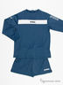 Симпатичный комплект, состоящий из футболки и шорт. Футболка с короткими рукавами и округлым вырезом горловины. Украшена принтом. Шорты выполнены на эластичном поясе.