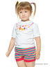 Симпатичный комплект, состоящий из футболки и шортиков. Футболка с округлым вырезом горловины и короткими рукавами. Шортики с удобным эластичным поясом. Модель украшена ярким принтом.