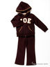 Замечательный костюм состоит из двух предметов: толстовка и брюки. Толстовка с длинными рукавами и капюшоном дополнена спереди застежкой на молнию. Брюки на эластичным поясом для более комфортной посадки. Отличный вариант на каждый день.