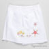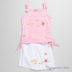 Оригинальный комплект, состоящий из майки и шорт. Майка декорирована оборками на бретелях и вышивкой на полочке. Шорты на плотной резинке спереди дополнены планкой, имитирующей юбку с запахом. Накладной карман. Передняя часть изделия декорирована вышивкой.