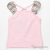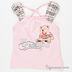 Забавный комплект, состоящий из майки и юбки. Майка оригинального кроя декорирована аппликацией и набивным рисунком. Юбочка на плотной резинке. Декорирована яркой лентой и тремя воланами.