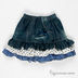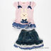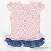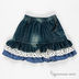 Комплект из 2 предметов. Футболка в горох, аппликация, низ отделан рюшей. Юбка джинсовая с кармашком, пояс - резинка, эффект многослойности.