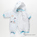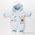 Мягкий, теплый комбинезон на синтепоновой подкладке с отстегивающимися пинетками. Застежка на кнопки по всей длине изделия. Теплый капюшон с "ушками". Полочка декорирована оригинальной аппликацией. Можно, отсоединив пинетки, соединить ноги, застегнуть внизу булавкой и получится конверт.