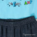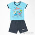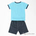 Комплект состоит из футболки и шорт. Футболка застегивается на две пуговицы на левом плечике. Полочка декорирована аппликациями. В пояс шорт вшита резинка.