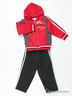 Мягкий трикотажный комплект состоит из толстовки и из брюк. Толстовка с капюшоном, с застежкой на молнию. Длинный прямой рукав и низ изделия присборены на манжеты, два прорезных кармана, полочка декорирована аппликацией и набивным рисунком. Брюки на резинке. Два прорезных кармана в боковых швах, декоративные лампасы.