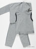 Мягкий комплект из футера состоит из жилета, джемпера и брюк. Жилет с глубоким капюшоном, с застежкой на молнию. Два накладных кармана. Джемпер с округлым вырезом горловины и с длинным рукавом. Брюки на плотной резинке, декоративные лампасы по бокам.
