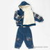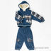 Мягкий и теплый комплект, состоящий из куртки и брюк на синтепоновой подкладке. Куртка с капюшоном застегивается на молнию, полочка декорирована аппликацией. Два кармана. Брюки на плотной резинке. Дополнены врезными карманами.