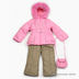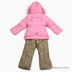 Оригинальный комплект для девочки, состоящий из куртки и брюк. Куртка с застежкой на молнию, капюшон на кулиске с мехом, длинный прямой рукав, два кармана, пояс на резинке. Брюки на резинке, два кармана. В комплекте сумочка.