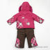 Оригинальный комплект для девочки, состоящий из куртки и полукомбинезона. Куртка с застежкой на молнию и на клапан, капюшон на кулиске с мехом, длинный прямой рукав, два кармана. Полукомбинезон на резинке, два кармана. Изделие декорировано аппликациями.