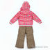 Оригинальный комплект для девочки, состоящий из куртки и брюк. Куртка с застежкой на молнию и на клапан с кнопками, капюшон на кулиске с мехом, длинный прямой рукав с трикотажной манжетой, два кармана, пояс на трикотажной резинке. Брюки на резинке, два кармана.
