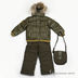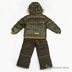 Классический комплект, состоящий из куртки и брюк. Куртка с застежкой на молнию и на планку с кнопками, капюшон на кулиске с мехом и ветрозащитным клапаном на липучке, длинный прямой рукав, два кармана. Брюки на резинке, с двумя карманами.
