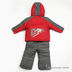 Классический комплект, состоящий из куртки и полукомбинезона. Куртка с застежкой на молнию и на планку с кнопками, капюшон на кулиске с мехом и ветрозащитным клапаном на липучке, длинный прямой рукав, три кармана. Полукомбинезон на резинке, с двумя карманами.