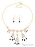 Восхитительный комплект бижутерии, состоящий из колье и серег. Такое изделие будет уместно в качестве украшения в любое время суток, придав наряду законченность и стиль. Аксессуар идеально дополнит Ваш образ, подчеркнув его изысканность и утонченность. Ювелирный сплав, стразы, ювелирный пластик. Размер: 52 см, 4 см.
