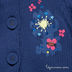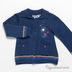 Кофта прямого кроя с отложным воротом застегиваается на пуговицы на полочке по всей длине изделия. Воротник, манжеты и низ изделия - трикотажные резинки. Два передних кармана декорированы пуговками. Полочка украшена аппликацией, вышивкой и паетками.