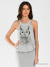 Детали: юбка - отрезной пояс-резинка, ассиметричный низ; топ - без рукавов, округлый вырез, спинка дополнена тонкими лентами, на полочке принт