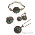 Комплект(кулон на цепи,серьги,кольцо,браслет)Migura, цвет бронзовый с чернением,зеленый,красный