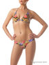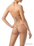 Молодёжная пляжная тройка. Бюст – мягкие чашечки на каркасной поддержке с лёгкой драпировкой под грудью, с выходом на тонкие завязки с фиксацией на шее и с застёжкой на спине. Под подкладкой бюста расположены дублированные формы плавающего типа, которые при необходимости можно легко удалить через специальные отверстия. Плавки-стринг классического кроя, популярной формы и мини-шортики из мягкой эластичной сетки. Весь комплект выполнен из деликатной микрофибры и эластичной сетки в технике поместного принтования, в сложносочинённом рисунке 'Леопард с цветами'.