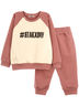 Свитшот с длинным рукавом на манжете, в горловине планка. Брюки на манжетах, спереди карманы с отрезным бочком. Изготовлен из петельчатого футера с эластаном.