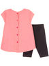 Туника с коротким рукавом, сзади застежка на пуговицы. Леггинсы выше колена, в поясе резинка. Изготовлен из кулирки с лайкрой.