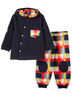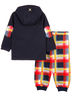 Бомбер с длинным рукавом, спереди застежка на кнопки и декоративный кармашек. Брючки на манжетах, по переду декоративные элементы.
