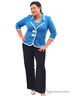 Комплект состоит из жакета и топа. Жакет прилегающего силуэта, с центральной застежкой на две крупные кнопки, с втачными одношовными рукавами 3/4 длиной. Жакет с воротником и лацканами пиджачного типа. Спинка жакета со средним швом и двумя рельефами, полочки с двумя нагрудными вытачками из рельефов. На уровне бедер пришиты накладные карманы.
