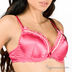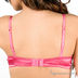 Яркий и будоражащий комплект цвета "фуксия" из формованного бюстгальтера и трусиков-слип. Чашечки бюстгальтера с эффектом Push-up на косточках, обеспечивающие исключительную форму и поддержку, выполнены снаружи из атласа и продублированы хлопковой подкладкой с внутренней стороны. Верхний обрез чашечек украшен ажурной сеточкой и кружевом, а соединение чашечек – бантиком с изящной подвеской-логотипом. Низ бюстгальтера так же декорирован кружевом. Основание бретелей декорировано атласными бантиками. Застежка состоит из двух петель-крючков, расположенных в три ряда. По всей длине застежки имеется мягкая подкладка. Эластичный пояс очаровательных трусиков выполнен из сеточки-рюши на резинке и декорирован бантиком с подвеской-логотипом LB. Передняя часть трусиков из атласа дополнена изящной двойной сеточкой сзади. Ластовица продублирована хлопковой подкладкой.