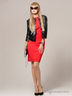Ультрамодный и яркий молодежный комплект. Жакет из искусственной кожи, на пуговицах. Платье без рукавов, вытачки выведены наружу. На спинке - потайная застежка-молния.