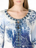 Комплект из топа и кардигана. Трикотажный топ прямого кроя. Круглая горловина с глубоким вырезом. Горловина украшена декоративными металлическими элементами. Полочка украшена стразами. Трикотажный кардиган прямого кроя с длинными рукавами. Круглый ворот горловины. Застегивается на крючки. Горловина и планка оформлены декоративными металлическими элементами, повторяющие украшения топа.