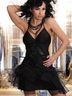 Очаровательная сорочка и стринги сделаны из черной эластичной ткани, которая плотно облегает тело. Юбка ассиметричной формы сверху отделана несколькими рядами капрона. Отделка шелковыми лентами в виде шнуровки спереди добавляет шарма, и все вместе выглядит исключительно элегантно и нарядно.