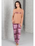 Домашний костюм в свежей цветовой гамме благородных оттенков охры, розовых и бордовых цветах. Джемпер из мягкого хлопкового футера свободного силуэта с втачным рукавом с отделкой из трикотажа компаньона и свободные брюки с поясом на резинке. Максимально удобный и практичный домашний костюм украшает стильный принт со сверкающим эффектом.