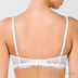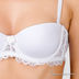 Бюстгальтер балконет на косточках с эффектом push-up с поролоновым уплотнителем. Бесшовные чашечки. Бретели съемные, регулируются по длине. Застежка на два крючка. Задняя часть бюстгалтера по краям посаженна на резинки с силиконовой прокладкой. Выполнен из шелковистого эластичного материала. Украшен кружевом.