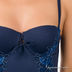 Комплект из корсета и трусов. Корсет из эластичной ткани, декорированный вышивкой. Без каркаса. Бюстгалтер типа балконет. Чашечки на косточках с небольшим эффектом push-up(поролоновый уплотнитель) без швов. Чашечки соеденены небольшой шнуровкой. Съемные регулируемые бретельки. Верх изделия пасажен ан резинку. Застегивается сзади на крючки в два ряда. Сетчатая подкладка. Трусики слипы.