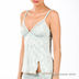 Топ из эластичного, приятного на ощупь материала. Отрезной лиф, украшенный кружевом. Регулируемые бретельки. Спереди небольшой разрез.