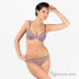 Изящный комплект нижнего белья нежно-сиреневого цвета. Чашечки бюстгальтера на косточках с гелевым Push-up отделаны декоративной сеточкой и тесьмой. Верхний обрез чашечек расшит паетками. Боковинки бюстгальтера и трусики выполнены из сеточки-кружева и тесьмы. Бретели, раздвоенные спереди, регулируются по длине. Застежка из двух крючков и петель, расположенных в три ряда,имеет мягкую подкладку по всей длине, что уменьшает трение и неприятные ощущения. Чашечки и ластовица имеют хлопковую подкладку.