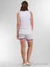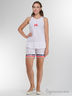 Очаровательный комплект состоит из блузки без рукавов и шорт. Блузка по бёдрам на баске, на резинке. На шортах с низу логотип коллекции "Lunatica" выполненный из страз и отделка атласными лентами.