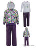 Комплект из хлопка состоит из трех предметов: штаны, толстовка и куртка. Штаны украшены вышивкой, толстовка украшена принтом, куртка с капюшоном на молнии украшена принтом. Отличный вариант для повседневного использования.