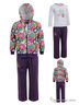 Комплект из хлопка состоит из трех предметов: штаны, толстовка и куртка. Штаны украшены вышивкой, толстовка украшена принтом, куртка с капюшоном на молнии украшена принтом. Отличный вариант для повседневного использования.