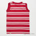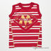 Яркая трикотажкая майка без рукавов в полоску. Округлый вырез. Горловина и руква обшиты широким кантом в тон полоски. Детали майки соеденяются декоративной отстрочкой. Аппликация из многочисленных деталей и вышивок на груди делает майку более яркой и интересной.