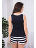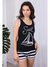 Комплект (майка+шорты) выполнен из кулирного полотна высокого качества. Комплект с ярким принтом и контрастными фортами с морской тематикой отлично подойдут как для морских прогулок, так и для повседневной носки.