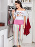 Отличный костюм. Состоит из футболки и капри. Футболка с короткими рукавами и округлым вырезом горловины. Капри контрастной расцветки на эластичном поясе м втачными карманами по бокам. Изделия выполнены из комфортного материала. Отличный вариант для дома и отдыха на каждый день.