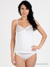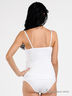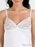 Майка облегающего силуэта. Тонкие лямки. Отрезной лиф. Кружевная вставка, атласная ленточка с декоративным металлическим элементом.