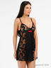 Эротичный комплект, состоящий из легкого, воздушного пеньюара и трусиков-стрингов выполнен из нежной сетчатой итальянской хлопковой ткани с кружевными гипюровыми вставками. Отрезной лиф пеньюара выполнен из кружевного гипюра и дополнен тонкими бретелями и декорирован задорными помпонами. Боковые кружевные вставки добавляют в образ нотку романтичности. Трусики-стринги с кружевной гипюровой вставкой.