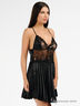 Романтичный комплект, состоящий из пеньюара и трусиков-стрингов выполнен из атласной ткани. отрезной лиф декорирован кружевом с пайетками и дополнен регулируемыми по длине бретелями, перекрещивающимися на спине. полочка декорирована сетчатым кружевом с пайетками, низ изделия декорирован гофре.