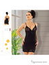 Изящный комплект, состоящий из пеньюара и трусиков-стрингов выполнен из эластичного, хлопкового итальянского бифлекса. Кружевной формованный лиф дополнен эластичными, регулируемыми по длине бретелями и декорирован атласным кокетливым бантиком со стразами. Низ изделия декорирован кружевом. Трусики-стринги декорированы атласными бантиками по бокам.