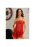 Романтичный комплект, состоящий из сорочки и трусиков-стрингов выполнен из сетчатой эластичной ткани. Отрезной лиф и середина полочки выполнены из кружевного эластичного гипюра, тонкие эластичные лямки. Низ изделия декорирован сетчатыми оборками и атласными бантами. В комплекте ажурные трусики-стринги.