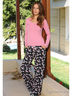 Очаровательный комплект, состоящий из лонгслива и брюк выполнен из тонкого трикотажа. Лонгслив с округлым вырезом горловины и с длинным прямым рукавом. Брюки с отрезным поясом на кулиске с атласной лентой, два кармана.